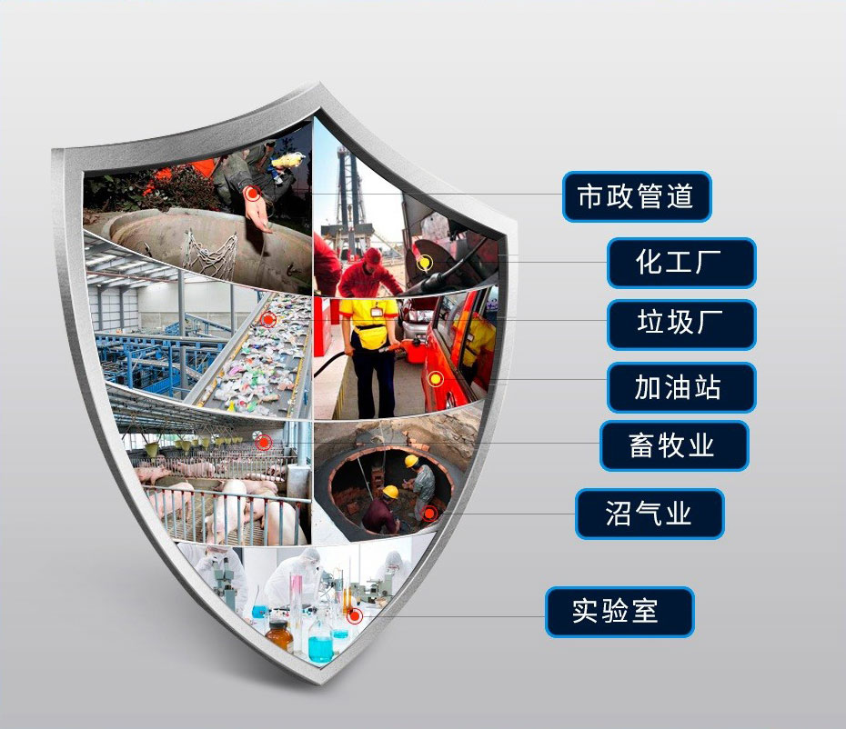 多功能氣體檢測儀有聲音、光和振動三級報警器。
