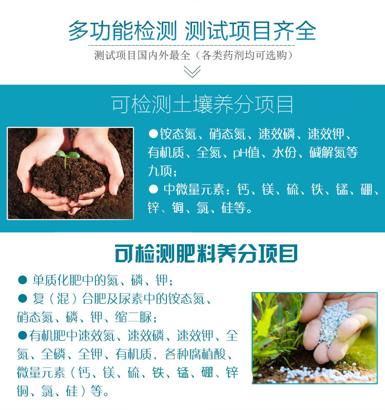 這是一個升級的全項目土壤肥料營養檢測器,一個噴塑鋼殼設計,一個堅固耐用,完整的配件和成品藥物。