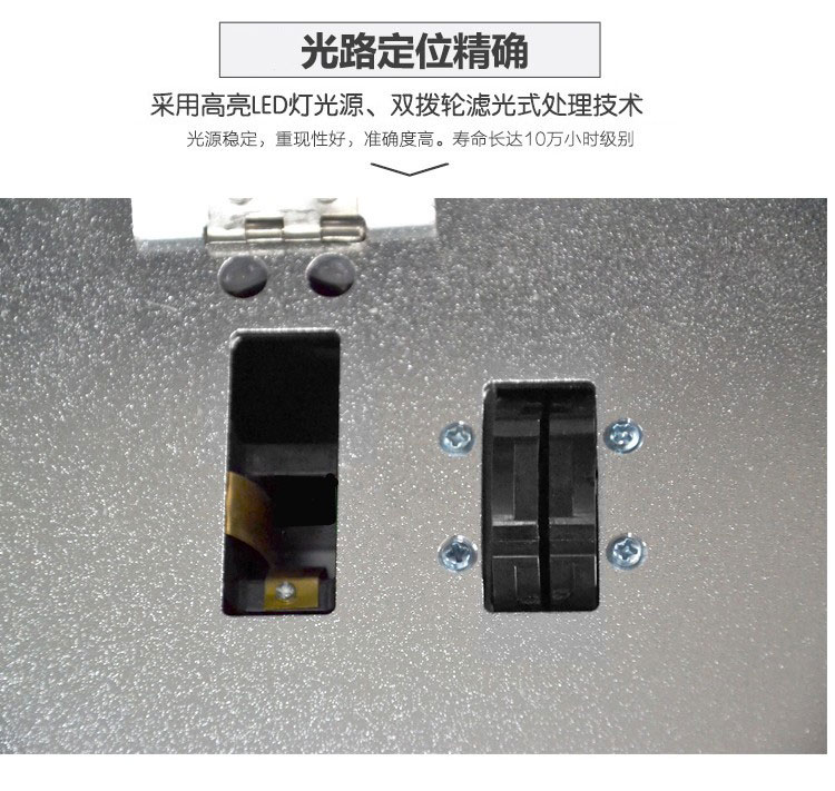 采用高光引導光源和雙輪濾波處理技術,確保光源波長穩定,硅半導體作為信號接收系統,壽命10萬小時。光源穩定、重現性好、準確。