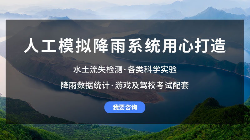 便攜人工降雨應用模擬系統區域1降雨面積為12mx3m,分為兩級控制,分布在5條水管上的77個降雨噴嘴。新型提供了一種