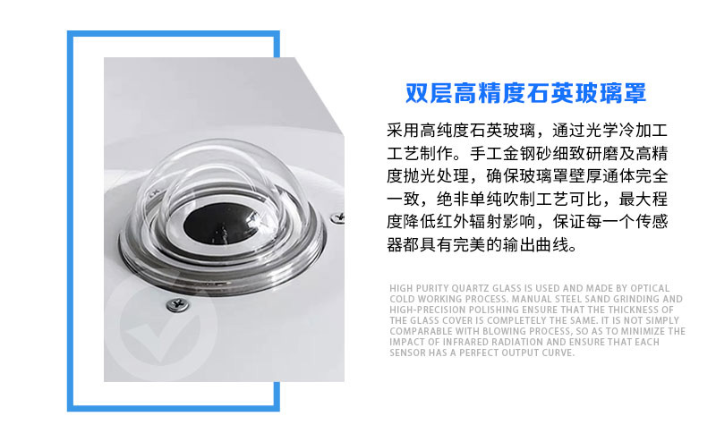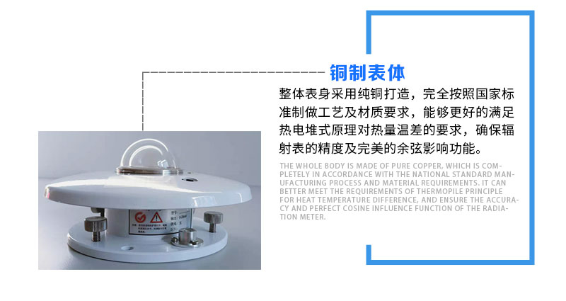 總輻射表硅光電總輻射計的光譜響應(yīng)只有0.4~1.1m,雖然只有短波輻射的一部分被采樣。它具有質(zhì)量高、溫度校正精度高、響應(yīng)速度快、精度高等優(yōu)點,能夠滿足更多應(yīng)用的需要在大多數(shù)天空條件下,白天光譜的均勻限幅誤差小于3%和10%。在多云條件下,錯誤通常是正的。總輻射表由雙層石英玻璃蓋、傳感元件、遮光板、表面體、干燥劑等組成。感應(yīng)元件熱反應(yīng)器是儀表的核心部件,感應(yīng)表面作為輻射接收和能量交換裝置發(fā)黑,感應(yīng)表面連接熱反應(yīng)器的熱結(jié)點,當(dāng)有陽光時溫度升高時,與太陽輻射強度成正比,形成熱差電勢。設(shè)計了雙層玻璃罩,以減少空氣對流對輻射計的影響。總輻射(例如)是指直接太陽輻射和以高于水平2的角度接收的散射輻射之和。