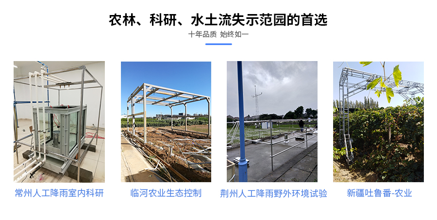 人工模擬降雨裝置為組合式結構,安裝拆卸迅速,運輸方便,性能穩(wěn)定,控制系統(tǒng)反應靈敏,噴射距離可調(diào),雨強、雨滴動能、雨滴大小分布(中數(shù)直徑)等降雨特征值與天然降雨特征值基本一致,早在20世紀60年代,美國就開始研究人工降雨模擬技術,開發(fā)了各種降雨模擬技術,如噴霧、噴霧、旋轉(zhuǎn)等,降雨面積從0.5m2到50m2。